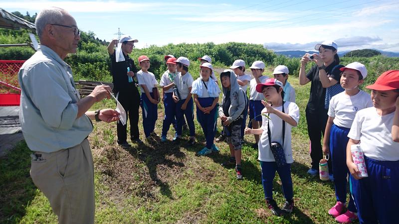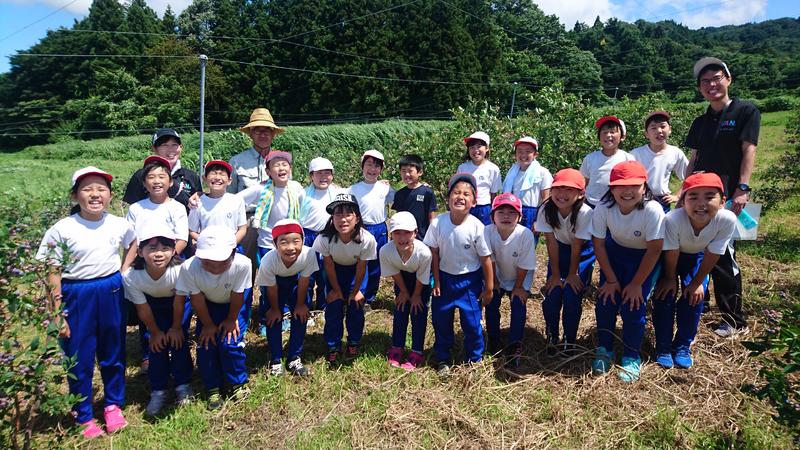 青空の下、総合の学習として3.4年生でブルーベリー狩りに行ってきました。
