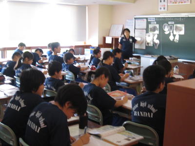 ②中学校の授業を参観し、小学校よりも広く深い学習内容と真剣に取り組む中学生の姿勢が「あこがれ」となりました。