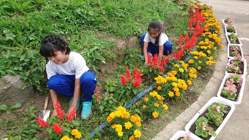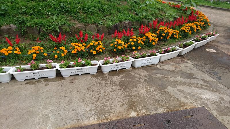 花壇やプランターにベコニアの苗を植えました。きれいに大きく育ってくれるといいですね。