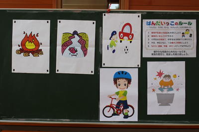 その後、「あいさつ・そろえる・話を聞く・プラス1行動」「早寝・早起き・朝ごはん・食べたらみがく」「止まる・見る・待つ」「ばんだいっこのルール」について、子どもたちと確認しました。