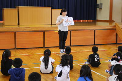 保健室の先生から「夏休みを楽しく元気に過ごすため」に、次の3つの話がありました。