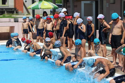 本番と同じプールで泳いだことは、子どもたちにとってよい経験となりました。