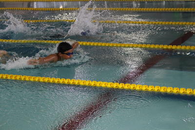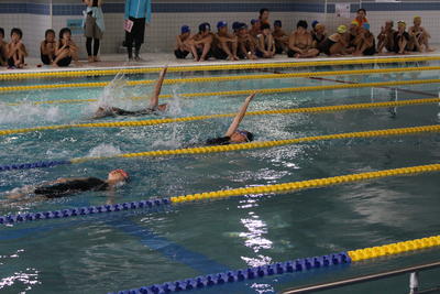 〇個人6種目(5年男子50m自由形・100m自由形・50m平泳ぎ・25mバタフライ、6年男子25m背泳ぎ、6年女子100m自由形)