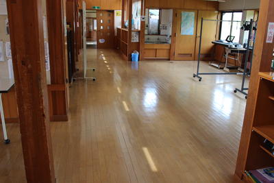 3日間、清掃業者が、校舎・体育館の床のワックスがけと窓のガラス磨きを行いました。