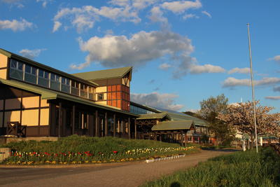 学校周辺の緑が一気に濃くなっていました。八重桜、チューリップの花も見事です。
