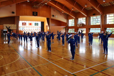 あいにくの雨でしたが、体育館で全体の動きを確認したり、