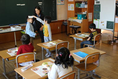 今日は、1・2年生が2冊の絵本を楽しみました。