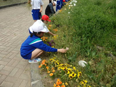 地域の方々を迎えるために花壇の草むしりも進めています。