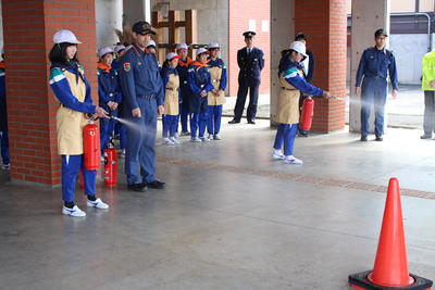火事を想定して避難したり、消火訓練を行ったりしました。