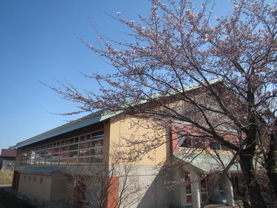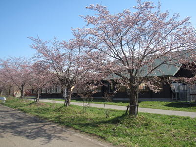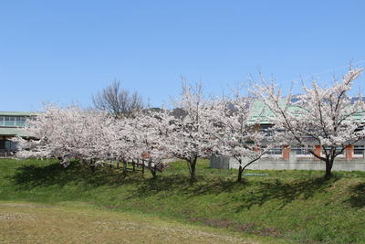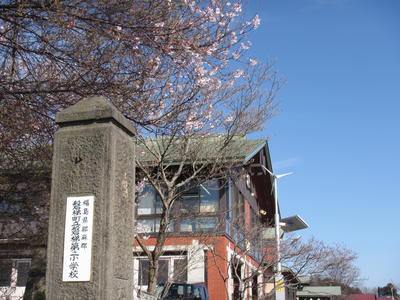 磐梯二小の校舎・校庭の桜の花が満開となりました。