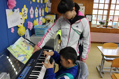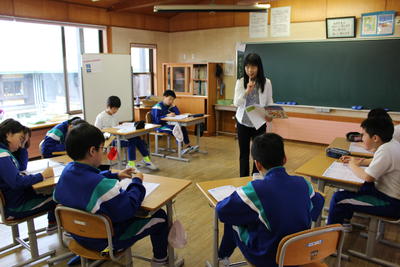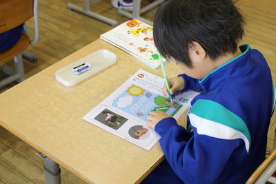 幼稚園の先生も、2年生と一緒に学校探検をしたり、机に座って絵を描いたり、全校生と一緒に給食を食べる1年生の姿を見て、ほっとした様子でした。