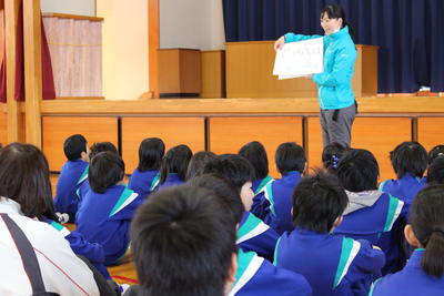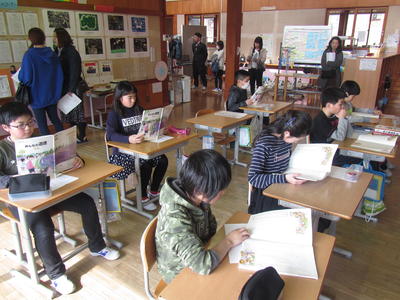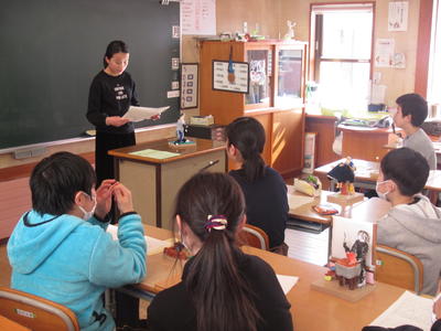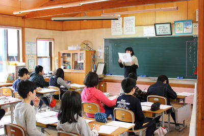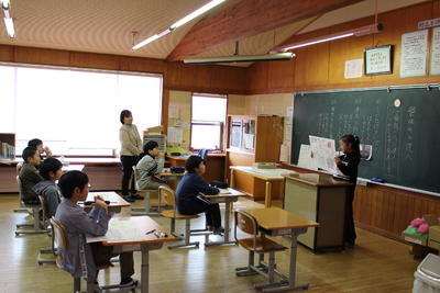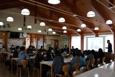 総合で発見した磐梯町の達人を発表し合う3年生