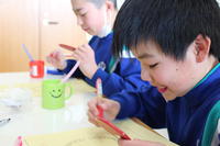 慣れない道具に悪戦苦闘。でも、休み時間を忘れるほど夢中になりました。