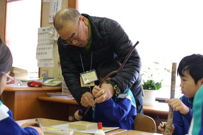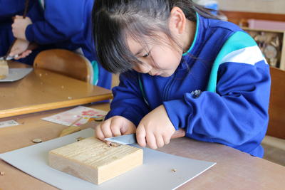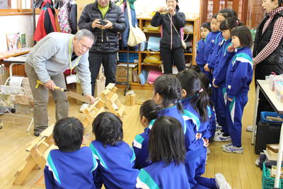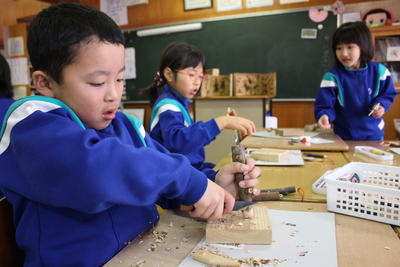 1年生と2年生が木片を使ったものづくりにチャレンジしました。