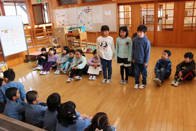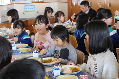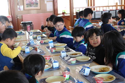 全校生で給食を食べたり、2年生と一緒に過ごしたりしました。