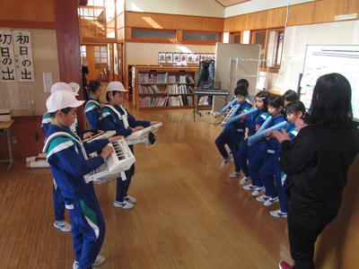 今は、1~5年生が鼓笛移杖式へ向けて練習しています。
