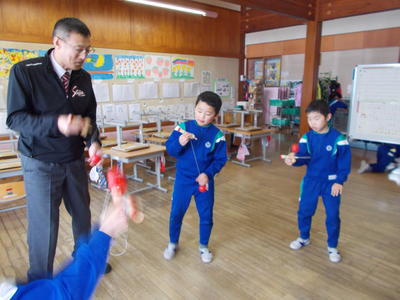 2019年2月19日 16時51分鼓笛練習が終わったひととき。2年生のブームは、けん玉です。