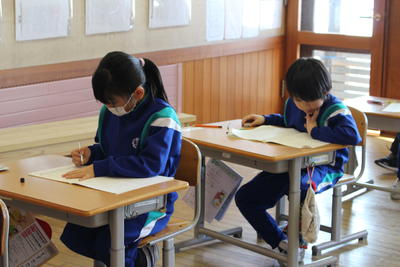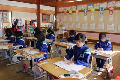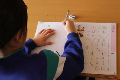 えんぴつの持ち方に気をつけ,課題をていねいに書いています。