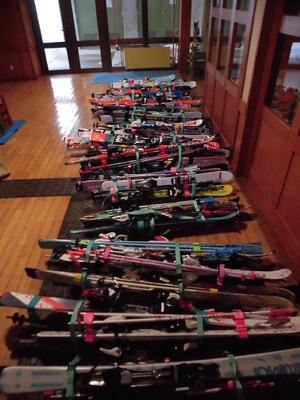 5・6年生が,みんなのスキーを玄関に運んでくれました。