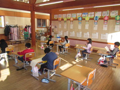子どもたちが調べた豆まきの由来を発表したり,追い出したい鬼を発表したりしました。