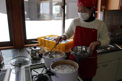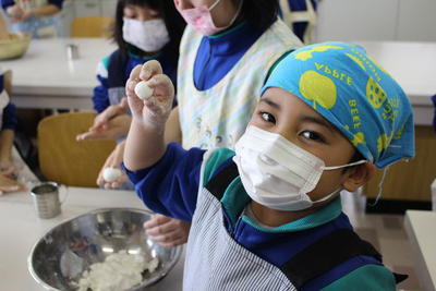 1年生と2年生は、生活科の学習で、「だんご汁」をつくりました。