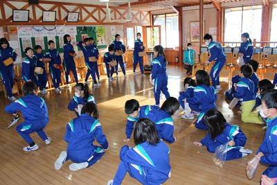 最後に,全校生で年男年女がまいた豆を拾いました。