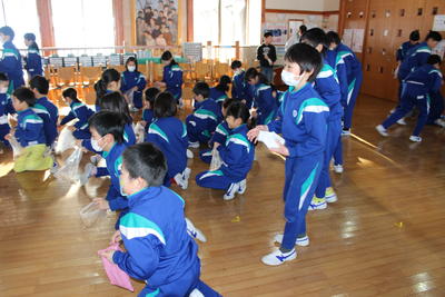 感動したのは,集会後,6年生が自主的に汚れた集会室の床をきれいにしてくれた姿です。