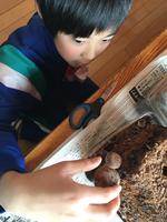 3・4年生のしいたけ菌床から,小さなしいたけが顔を出し始めました。