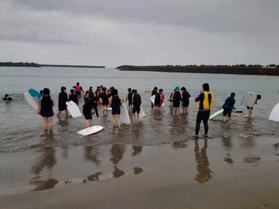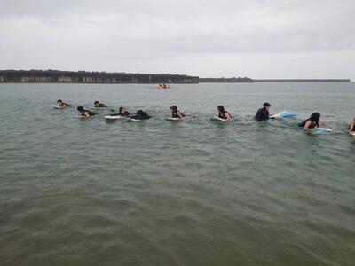 天気が心配されていましたが、海でボディボードやいかだ乗りの活動を楽しむことができました
