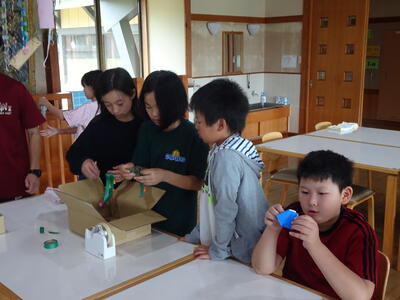 幼稚園が一緒だった子も多いようですが、初めは緊張した様子でした。しばらくすると緊張もほぐれ、休憩の時間に楽しく話をしていました。来週の自然教室が楽しみです。