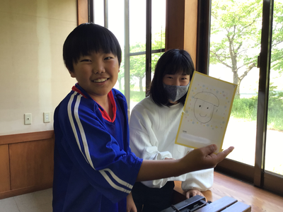 6年生の授業では少し難しい内容での自己紹介をしました。「My treasure is .」「It's from .」と、宝物やそれを誰からもらったかなどを伝え合いました。