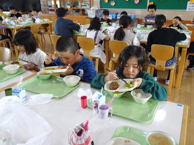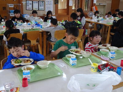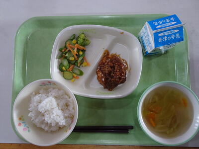 サラダに入っていたアスパラは、二小の保護者さんが育ててくださった『磐梯さとやまの慧み』のブランド野菜です!