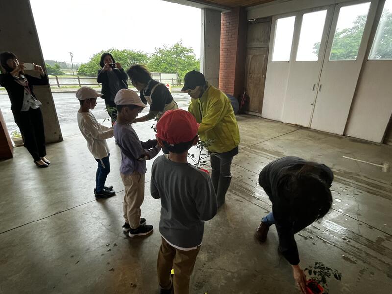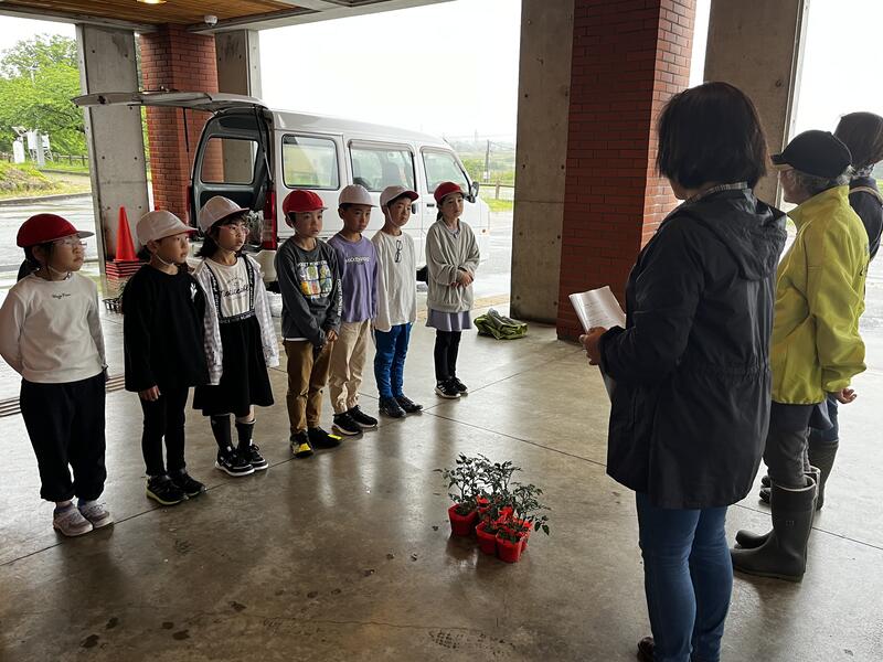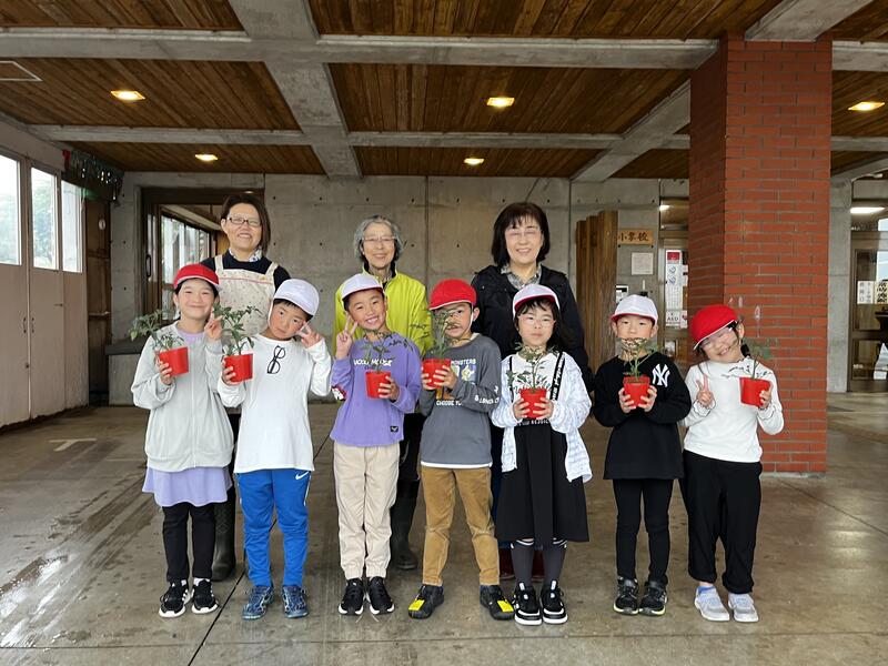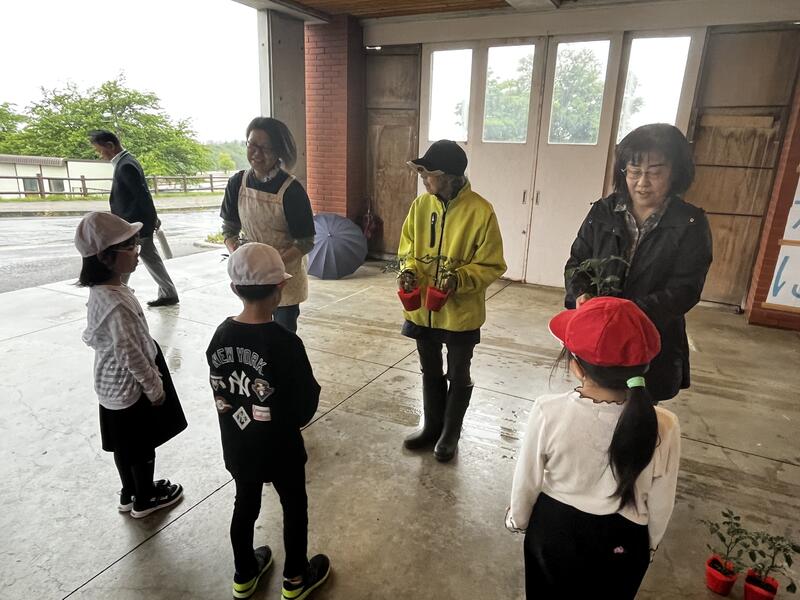 JA会津よつば女性部磐梯支部の方々より、2年生にミニトマトの苗を贈呈していただきました