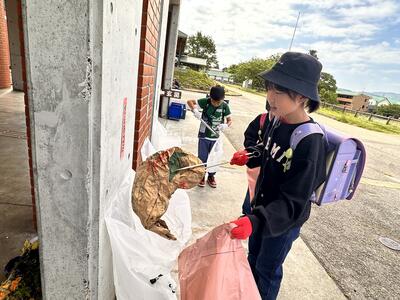 学校に着いてから、ごみを分別しました。いろいろなゴミが地域の道路に落ちていることを実感し、「ゴミを捨てる人がなくなればいいのに…」という声も、子どもたちから聞かれました。