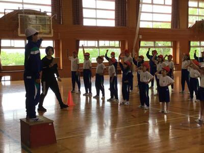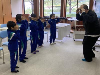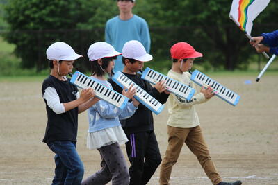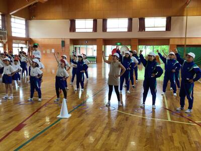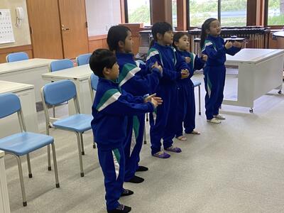 連休が明け、いよいよ運動会の週になりました。今日はあいにくの雨。しかし、子どもたちは朝からラジオ体操第一を手本を見ながら練習しました。昼休みは鼓笛練習。雨が上がり、外で先週の復習をしました。休み明けにも関わらず、子どもたちは上手に演奏することができました。