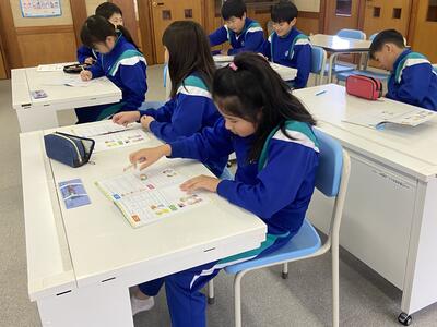 幼稚園の頃から英語に触れているので、1年生も楽しみながら積極的に学習しています