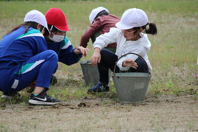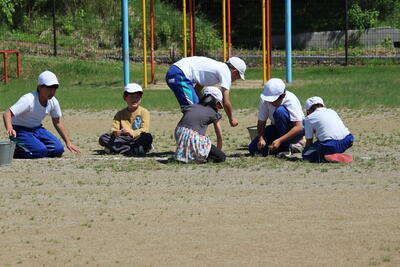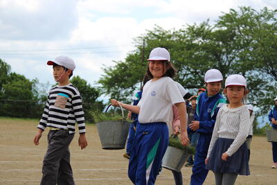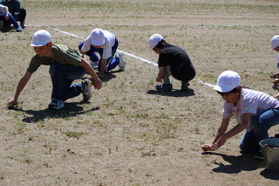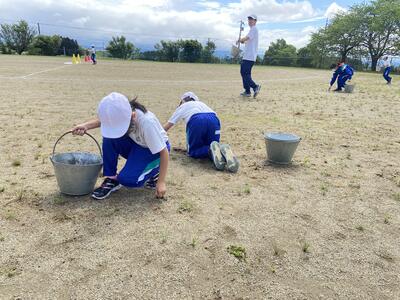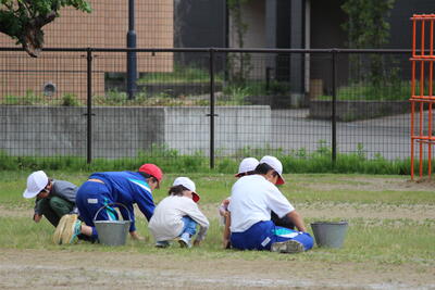 清掃の時間には、「第2回草むしり大会」が行われました。きれいな校庭になるように、10分間集中してもくもくと草むしりをしていました。