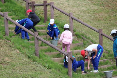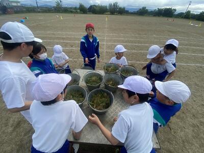 どの班も協力して一生懸命取り組んだので、校庭がとてもきれいになりました