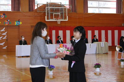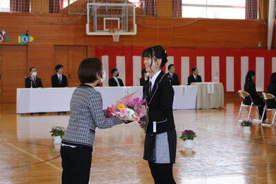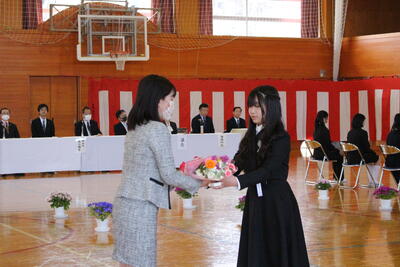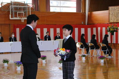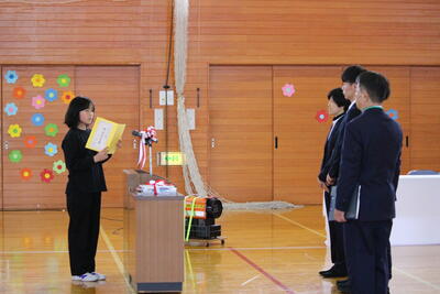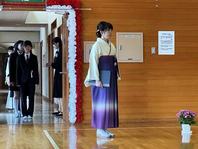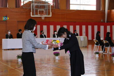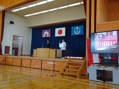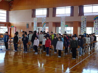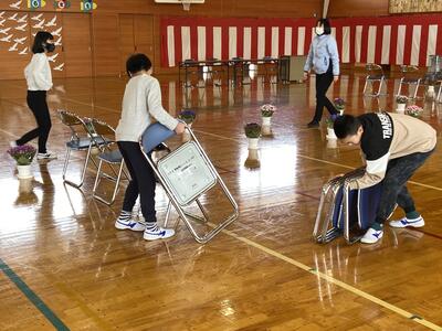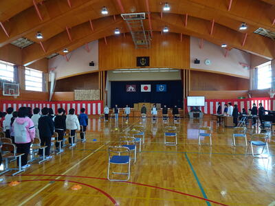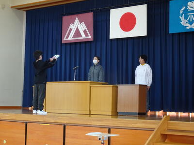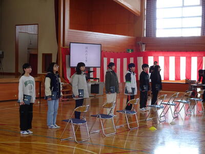 今日は、卒業式の予行を行いました。全校生が真剣な表情で予行に臨みました。
