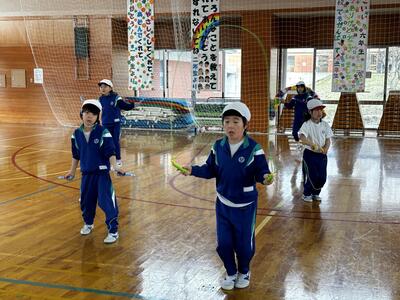 始めたころよりも、みんな上手になりました。1年生も2重跳びができるようになった人がたくさんいます。そして最後は、締めの長なわです。納得いく回数だった学年も、そうでない学年も最後の長なわを楽しんで跳ぶことができました。今年度のなわとびは、どの学年もでした