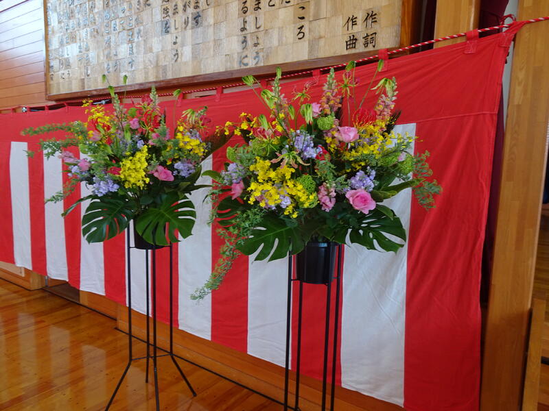 なお、日曹金属様より、入学式にも素敵なスタンド花をいただきました。ありがとうございました。