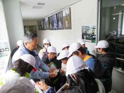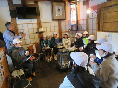 お酒が出来上がるまでの過程を1つ1つ丁寧に教えていただき、子どもたちは写真を撮ったりメモをとったり、進んで質問したりするなど興味津々な様子で見学していました。