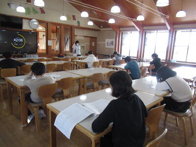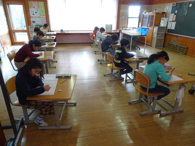 今日は漢字検定があり、1~3年生、4~6年生と2会場にわかれて、それぞれ受験しました。
