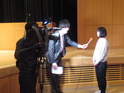 特色ある取組として本校代表児童による実践発表の場を設けていただいたほか、終了後にはテレビ取材もありました。