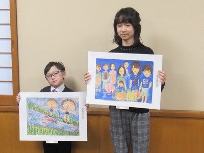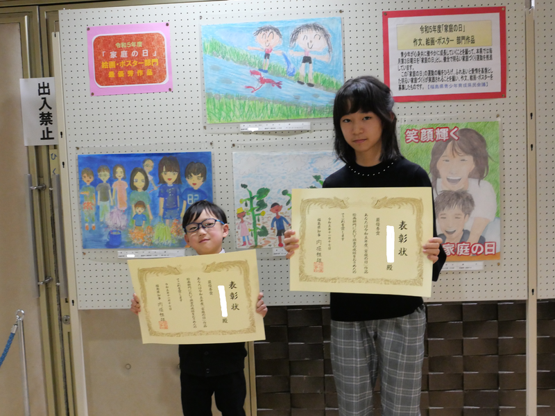 福島県青少年育成県民会議主催の「家庭の日」作品コンクールにおいて、本校児童2名が最優秀賞を受賞しました!17日(金)に県文化センターで行われた表彰式に参加し、その後町役場に行って町長さん・教育長さんに受賞を報告してきました。