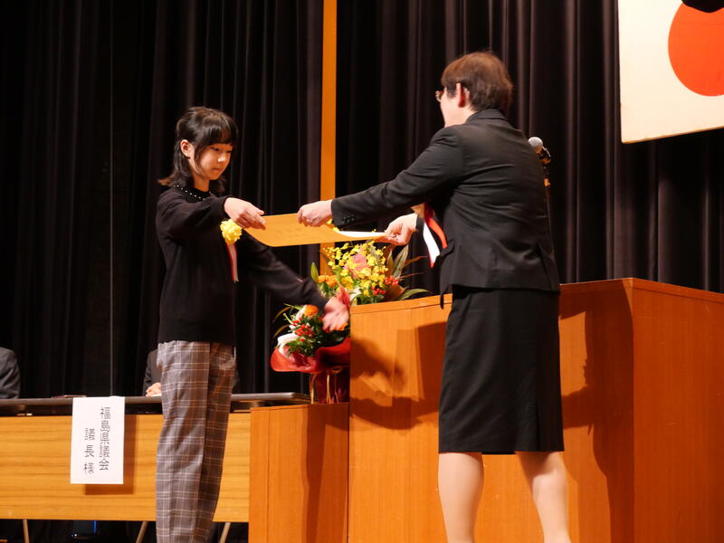 11月17日(金)に行われました、福島県青少年育成県民会議主催「家庭の日」作品コンクール表彰式の写真をいただきました。