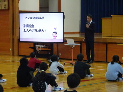 今日の全校朝の会の講話は、「信頼貯金」のお話でした。「信頼」は、自分の行動で増えたり、減ったりします。自分の生活を振り返りながら、みんな真剣に聞くことができました。