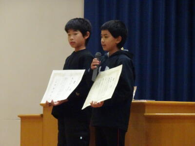 講話の後、表彰を行いました。芸術の秋、読書の秋、スポーツの秋にふさわしく、たくさんのコンクールや大会で賞状をいただきました。二小の子どもたちの頑張りが、素晴らしいです。表彰を讃える様子も、大変立派でした