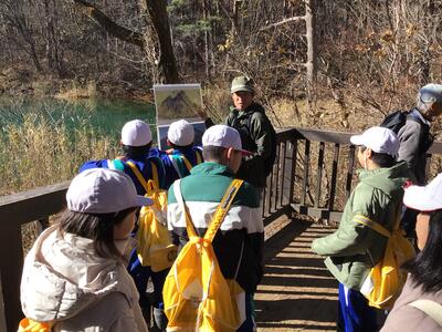 今日は、5年生が森林環境学習で五色沼に行ってきました。