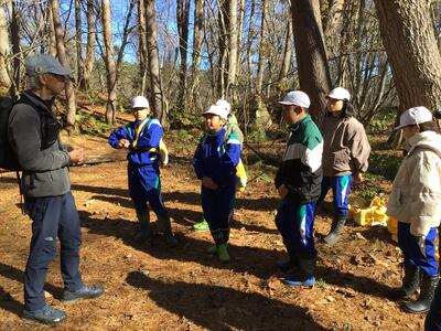 帰路の途中、磐梯山噴火後の森林を再生した「遠藤現夢」さんのお話を聞き、五色沼湖沼群の豊かな自然の起源を知ることができました。